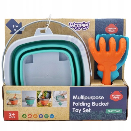 Silikonowe wiaderko z grabkami i łopatką od marki WOOPIE. Fantastyczne wiaderko do piaskownicy, na plażę lub do ogrodu, dzięki któremu dzieci miło spędzą czas na świeżym powietrzu. Wiaderko, dzięki składanej konstrukcji, zajmuje niewiele miejsca, jest łatwe w transporcie i wygodne do przechowywania. Zestaw zmieści się do dziecięcego plecaczka, do wózka czy plażowej torby.