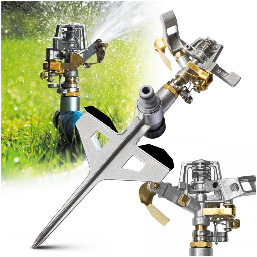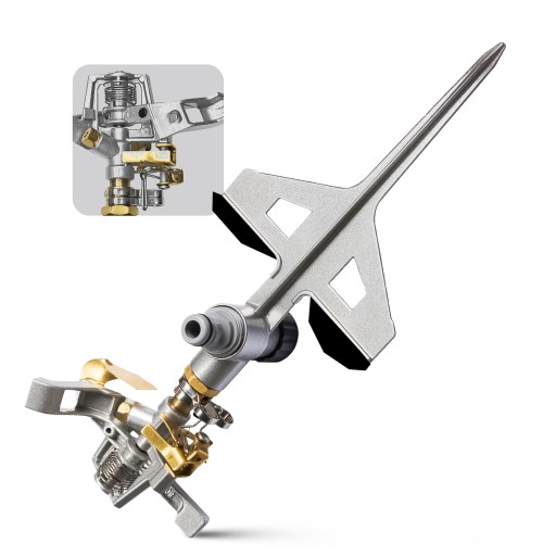 Profesjonalny metalowy zraszacz pulsacyjny na podstawie szpilki z dodatkowymi ramionami, które zapewniają maksymalną stabilność