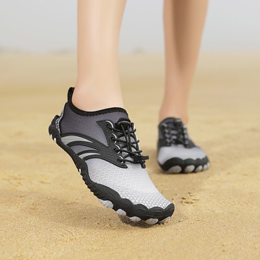 Lekka, elastyczna gruba gumowa podeszwa zapewnia ochronę stopy, zwiększając stabilność i komfort. Świetne do uprawiania sportów plażowych i wodnych.