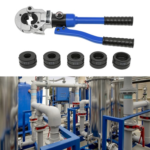 Dobra kompatybilność: Ten produkt jest wyposażony w 5 zestawów matryc lub różnych specyfikacji, które można dostosować do rur miedzianych lub 12 mm, 15 mm, 18 mm, 22 mm i 28 mm.
