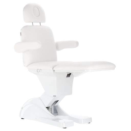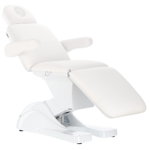 Wyposażony w innowacyjne elektryczne silniki, fotel umożliwia niezwykle łatwą i precyzyjną regulację elementów. Dzięki temu, zarówno specjalista, jak i klient mogą cieszyć się idealnie dopasowanym ustawieniem fotela, co jest kluczowe dla efektywności zabiegów. Regulacja odbywa się płynnie i cicho, zapewniając nienaruszoną atmosferę relaksu.