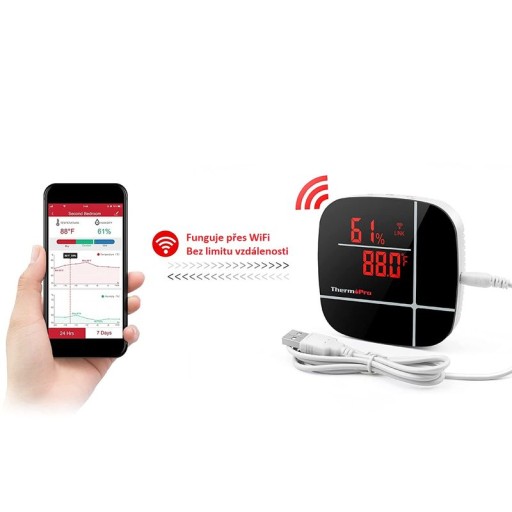 Termometr łączy się z siecią domową za pośrednictwem Wi-Fi 2,4 GHz. Pozwala to również na podłączenie go do inteligentnego domu za pomocą Amazon Alexa. Temperaturę i wilgotność można przeglądać na smartfonie z systemem iOS lub Android w aplikacji ThermoPro Home, w tym przegląd tygodniowy.