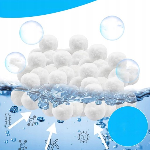 💦Materiał: Kule filtracyjne o masie 1400g wykonane są z włókien poliestrowych, polipropylenowych i akrylowych. Dobra elastyczność, nietoksyczny, stabilny. Kulki filtracyjne o masie 1400 g odpowiadają 50 kg piasku filtracyjnego.