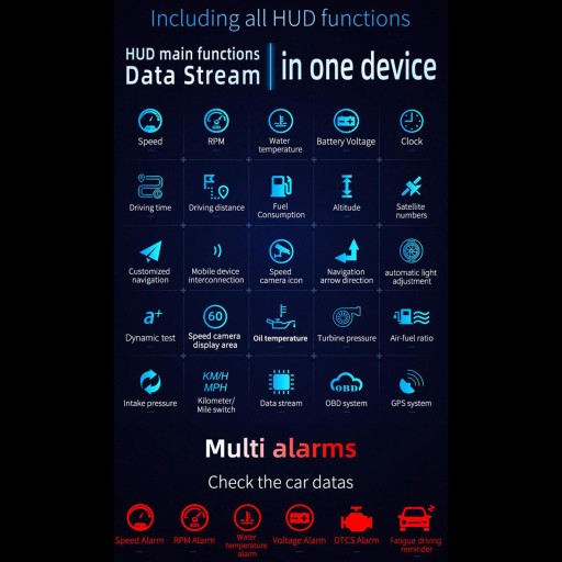 Pomóż kierowcy mniej rozpraszać się podczas jazdy, łatwo sprawdzaj prędkość i inne informacje. Również alarm prędkości Alarm prędkości obrotowej, woda