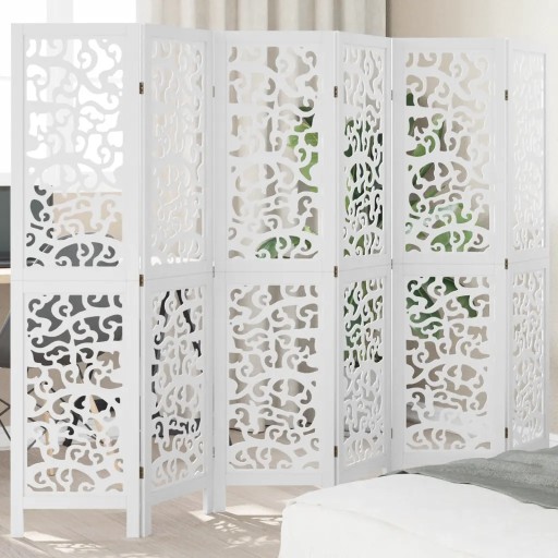 Экран для комнаты, 6-панельный, белый, массив павловнии