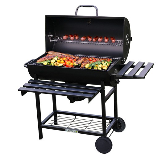 GRILL OGRODOWY WĘGLOWY Z POKRYWĄ I PÓŁKAMI VL09-A1 CZARNY