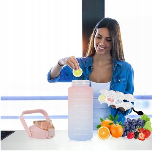BIDON motywacyjny butelka na wodę 2L 2000 ml Czerwony i niebieski