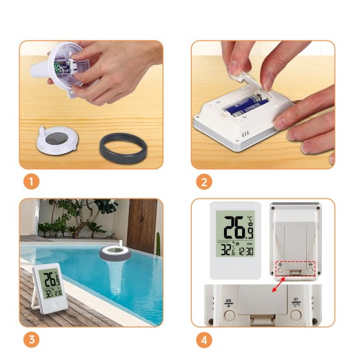 Jest to bardzo wygodny sposób sprawdzenia temperatury basenu. Po skonfigurowaniu wystarczy spojrzeć na wyświetlacz, a od razu będziesz wiedział, jaka jest temperatura wody, bez konieczności wystawiania stóp na zewnątrz, wyciągania termometru, zanurzania rąk w basenie itp.