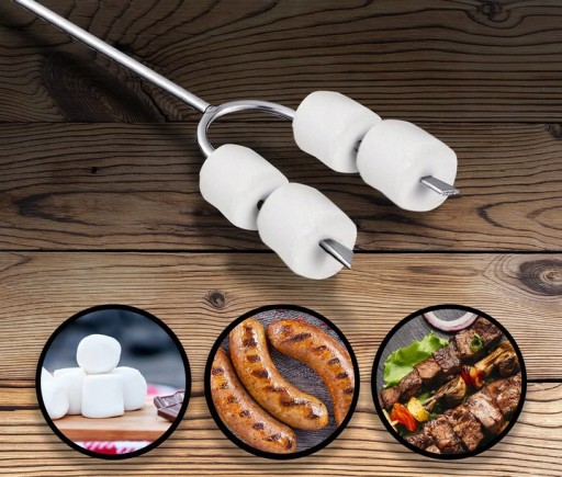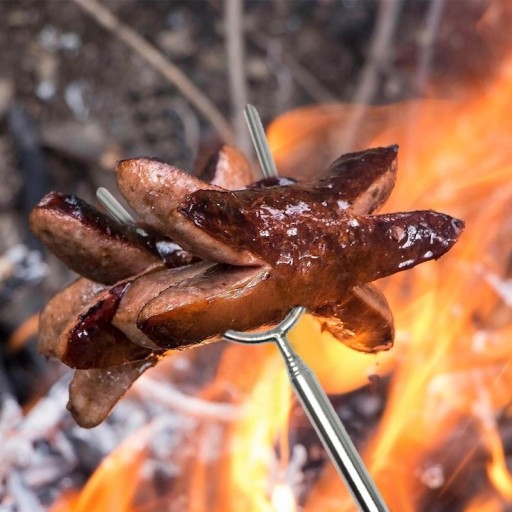 - Uchwyt jest obrotowy, dzięki czemu można łatwo obracać kiełbaskę, piankę - które właśnie pieczesz nad ogniskiem.
