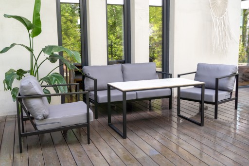 Ten zestaw zachwyca solidnością wykonania i pozwoli Ci na stworzenie modnej strefy wypoczynkowej. Minimalistyczna konstrukcja została wykonana z solidnej stali, która gwarantuje należytą wytrzymałość i stabilność. Zestaw jest wykonywany w 100 % w Polsce!