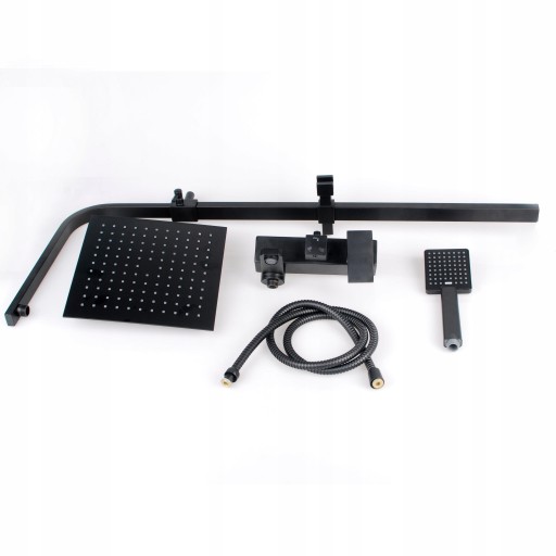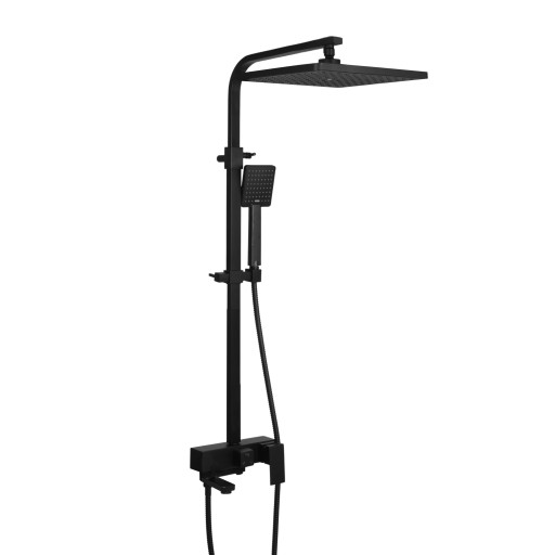 Bateria prysznicowa z deszczownicą 20 x 20 cm i wylewką - czarna