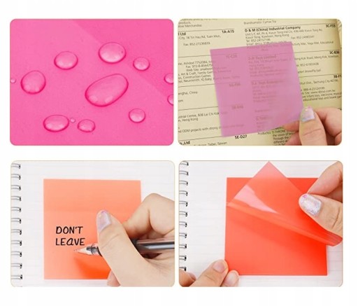 ▶️800 szt. (8 kolorów) karteczki transparentne, samoprzylepne 7,6 x 7,6 cm, 4 szt. zakładki indeksujące 1,2 x 4,5 cm ((5 x 25 karteczek) 2 szt. strzałka, 2 szt. prostokąt)