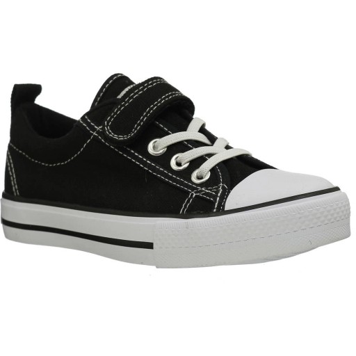 Czarne trampki dziecięce na rzepy szkolne z białą podeszwą