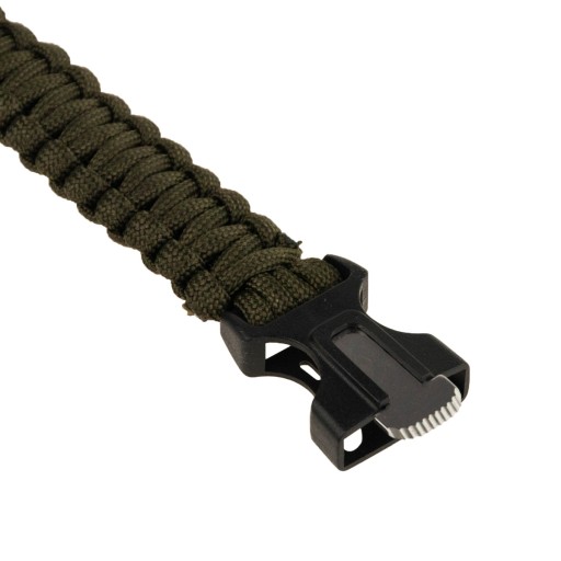 Zapięcie przymocowane jest do paracordowej linki – lekka, wytrzymała, stosowana w spadochronach, a tym samym o szerokim zastosowaniu podczas aktywności survivalowej.