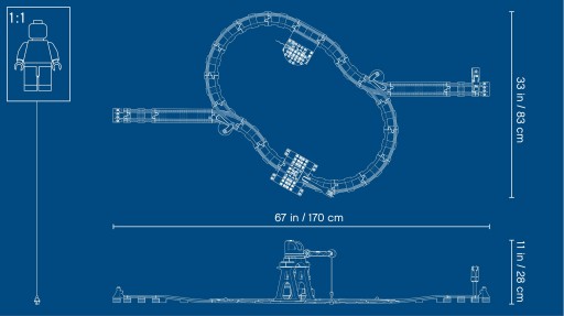 • Stacja kolejowa ma ok. 18 cm wysokości, 15 cm szerokości i 13 cm głębokości.