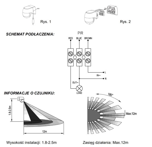 Wysokość montażu 1.8 - 2.5m