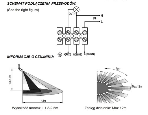 ✅ Wszechstronność zastosowania: Dzięki obszarowi wykrywania o kącie 180° oraz zasięgu do 12 metrów, czujnik ten może być używany w różnych miejscach, takich jak pomieszczenia, korytarze, czy zewnętrzne obszary oświetleniowe.