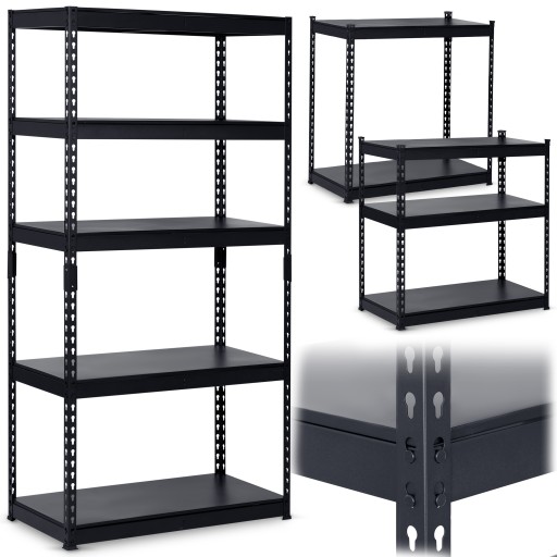 Regał składa się z 5 półek, na których możesz ułożyć produkty, kartony czy też urządzenia, maksymalnie obciążając każdą półkę aż do 250 kg.