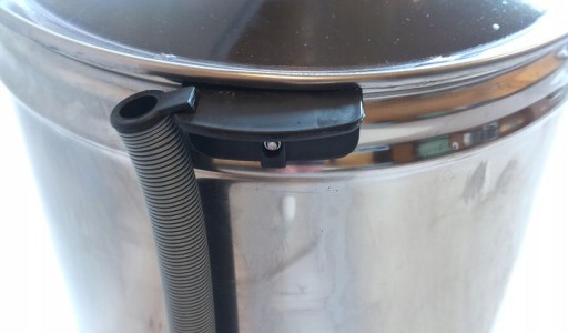 Wąż odpływowy pralki zawieszany jest na jednym z jej uchwytów.