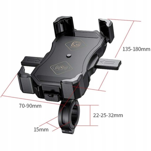 ▶️Uchwyt motocyklowy Kewig z ładowarką indukcyjną QI 15W, na telefon na rower