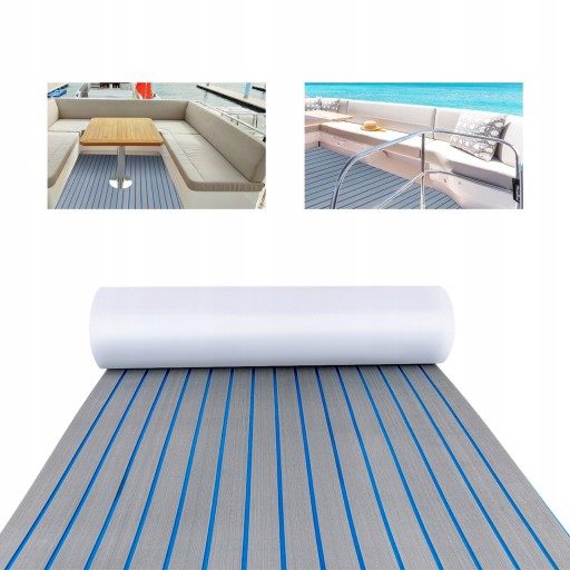 Ozdobić podłogę: Dopasowanie jasnoszarych i niebieskich pasków sprawia, że ta mata jest bardzo modna i z wyglądem imitacji teku, który może sprawić, że Twoja podłoga błyszczy i sprawi, że Twoja łódź będzie luksusowa i przyciągała wzrok.