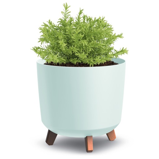 ✅ Doniczka Gracia Tubus charakteryzuje się klasyczną, okrągłą formą uniesioną na nóżkach o strukturze inspirowanej drewnem.