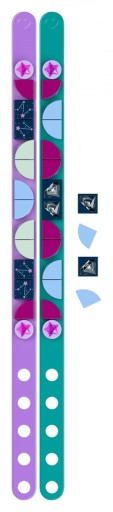 Fani magii, tajemnic i gwiazd będą się wspaniale bawić przy projektowaniu bransoletek z zestawu LEGO® DOTS Bransoletki z gwiazdami (41934)! Kreatywna zabawka zawiera dwie regulowane, smukłe opaski w kolorach morskim i fioletowym, które pasują na każdy nadgarstek, a do tego 32 kolorowe płytki, wśród których są także specjalne okrągłe płytki z opalizującymi gwiazdkami oraz płytki z udekorowane mapą nieba. Bransoletki są łatwe do ukończenia, więc dzieci mogą po prostu oddać się ich personalizacji i dopasowaniu do własnego stroju lub humoru.