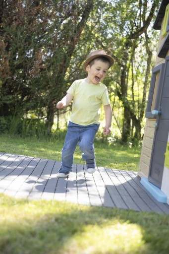 Doskonale dopasowuje się do wszystkich domków ogrodowych marki Smoby, zapewniając stabilność i bezpieczeństwo podczas zabawy.