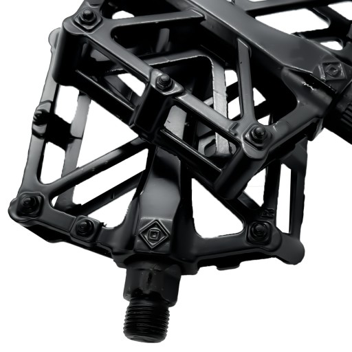 Pedały platformowe wykonane są z wysokiej jakości aluminium, co zapewnia lekkość, wytrzymałość i odporność na korozję.