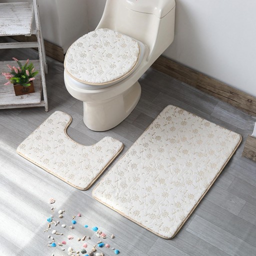 [TRZYCZĘŚCIOWY ZESTAW TOALETOWY]: Zestaw mat do kąpieli zawiera 1x pokrywę sedesu, 1x dywanik toaletowy w kształcie litery U i 1x matę do kąpieli. Miękki i trwały zestaw mat podłogowych jest dobry do dekoracji i ocieplenia łazienki.