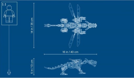 Cybernetyczny dragon ma mnóstwo zachwycających detali, a także ruchomą głowę i łapy. Jest uzbrojony w sprężynowe działka, które strzelają pociskami. W zestawie są też figurki do zbudowania z ekranami, które pokazują ich kondycję, oraz bogatą gamą nowych rodzajów broni i pancerzy.