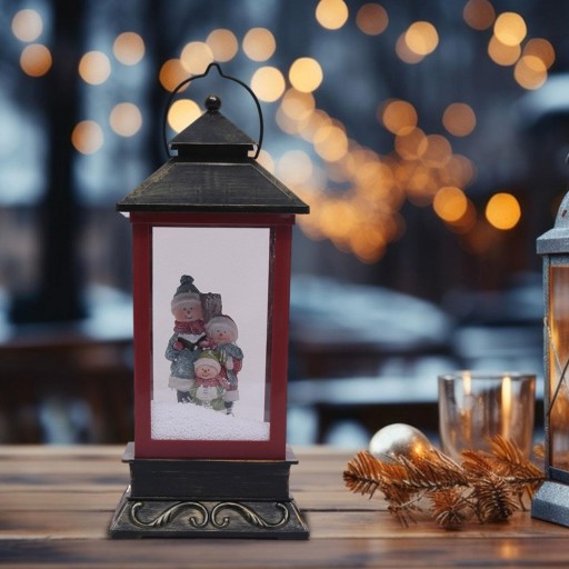 [Ozdoba bożonarodzeniowa]: Delikatna świąteczna figurka-latarnia ze śnieżną kulą, to ładny element centralny stołu.