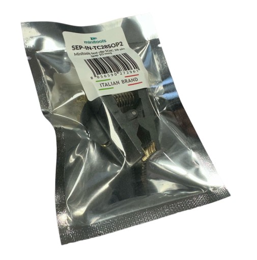 Klips testowy / pomiarowy SO28 (SOIC 28pin) - umożliwia badanie bądź programowanie układów (np. procesorów czy pamięci) w obudowach SO28 (SOIC 28-pin) bez konieczności ich wylutowywania z płytki drukowanej.