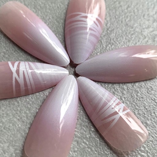 ✔️ Wybrany model jest w pięknym jasno różowym kolorze z delikatnym motywem french i białymi zdobieniami.