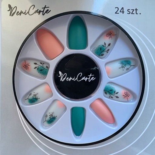 ✔️Nie potrzebujesz lampy ani lakierów. Eleganckie sztuczne paznokcie Deni Carte pozwolą Ci przygotować intrygującą stylizację. Są już ozdobione, a więc jedyne co musisz zrobić to nakleić je na swoje dłonie i cieszyć się perfekcyjną kreacją.
