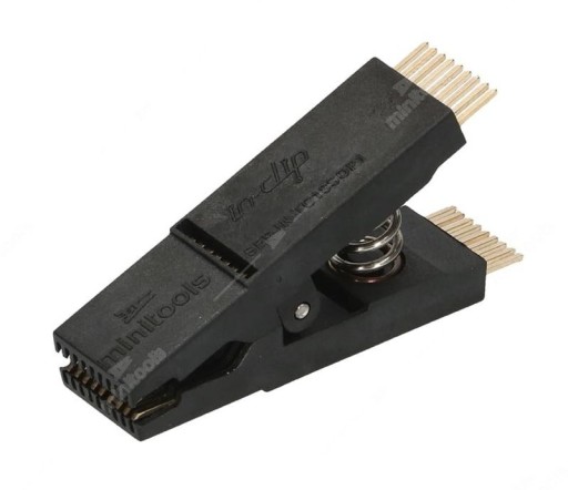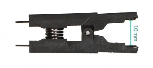 Klips posiada pozłacane styki i silną sprężynę dociskową zapewniającą dobry styk z badanym czy programowanym układem.