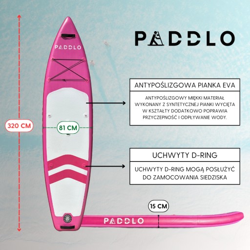 Stabilna deska pompowana SUP do pływania PADDLO 320CM + zestaw