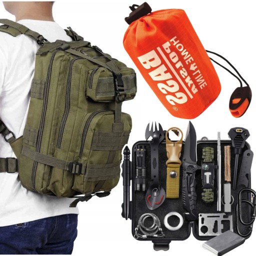 PLECAK TAKTYCZNY 35L + ZESTAW SURVIVALOWY 32w1 + ŚPIWÓR TERMICZNY