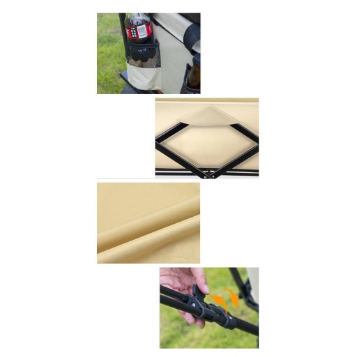 - Siatkowy uchwyt na kubek: Składany wózek wagonowy został zaprojektowany z dwoma siatkowymi uchwytami na kubki jako dodatkowe miejsce do przechowywania kubków, napojów i innych małych przedmiotów dla łatwego dostępu.