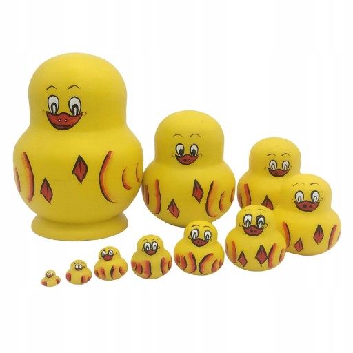 10 sztuk drewniana babuszka rosyjska lalka gniazdująca ręcznie malowana kreskówka kaczka