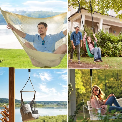 ✅【Nadaje się do większości huśtawek i hamaków】 ten zestaw huśtawek na drzewie doskonale nadaje się do fotela hamakowego, huśtawki siatkowej, klasycznych huśtawek na drzewie, huśtawek dla maluchów, huśtawek ogrodowych, huśtawek hamakowych, huśtawek tarasowych, huśtawek na werandzie, huśtawek na oponach, wiszących krzeseł, huśtawek dla niemowląt i tak dalej. Dobrym wyborem może być zabranie go na imprezę lub kemping. Zabawa zarówno dla dzieci, jak i dorosłych.