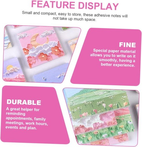 ①8 szt. notatki lewe karteczki samoprzylepne podkładki zachęcające do szkoły biura notatnik książka czytanie znacznik wiadomość naklejka scrapbooking bloki wiadomości krajobraz zdejmowana naklejka②Notatka samoprzylepna: wygodna do przyklejenia i oznaczania, łatwa do usunięcia i zmiany położenia, dobry pomocnik.③Przypomnienie o harmonogramie: te naklejki są łatwe do odklejenia i wystarczająco lepkie, co jest wygodne i praktyczne.④Notatka samoprzylepna: może być używana w biurze, domu, a także może być umieszczona na ścianie, tablicy, biurku.⑤Notatki do wiadomości: możesz napisać swoje uczucia, spostrzeżenia życiowe lub napisać notatkę, aby przypomnieć o swoim harmonogramie.