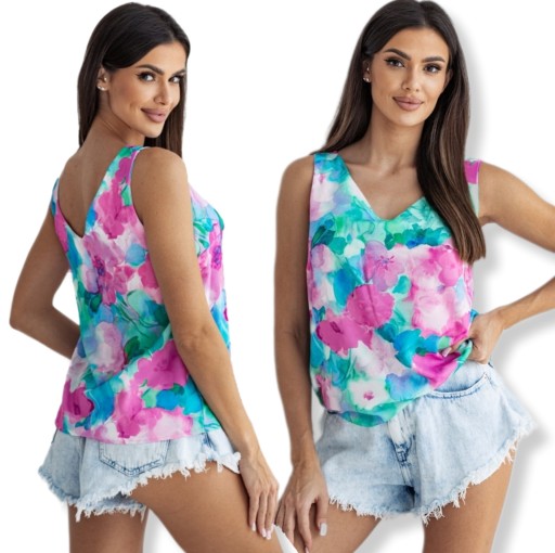 Ta damska bluzka na ramiączka z nadrukiem to idealna propozycja dla każdej kobiety, która chce wyróżnić się ze swoim stylem.