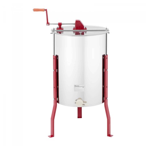 Miodarka marki Wiesenfield jest idealna zarówno do małych, jak i prywatnych pasiek. Miodarka umożliwia łatwe spływanie miodu, a także wyciąganie większych plastrów. Dzięki pojemności na 4 ramki o maksymalnym rozmiarze 500 x 245 mm w zaledwie kilku cyklach można odwirować cały miód. Duża średnica zbiornika 47 cm pozwala uzyskać wystarczającą siłę odśrodkową do wydajnego oddzielenia miodu od plastra. Miodarka jest obsługiwana ręcznie za pomocą żelaznej korby. Za jej pomocą reguluje się prędkość ekstraktora do miodu. Korpus wirówki i kosz na ramki wykonane są z wysokiej jakości stali nierdzewnej i spełniają wymagania higienicznej produkcji miodu. Materiał jest wyjątkowo trwały i łatwy do czyszczenia. Miodarka jest lekko podniesiona na trzech solidnych żelaznych nogach, co ułatwia napełnianie miodu. Kurek spustowy umożliwia również czyste i całkowite opróżnienie wirówki. Przezroczysta pokrywa ze szkła akrylowego pozwala przez cały czas obserwować proces wirowania, zapewniając tym samym pełną kontrolę nad zbiorem miodu.