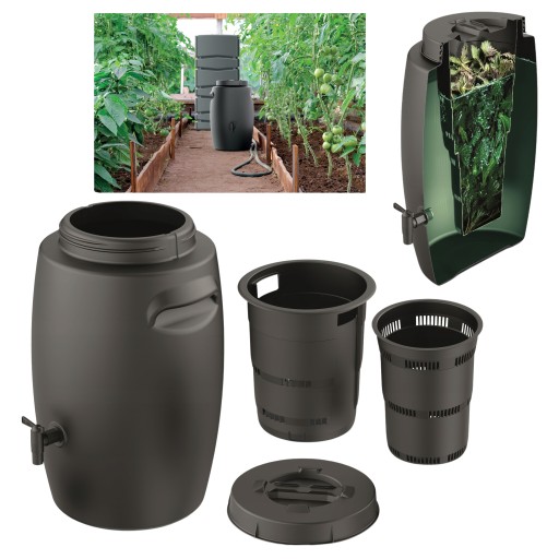 Pojemnik z kranikiem do wytwarzania nawozu wykonany z odpornego tworzywa sztucznego jest świetną alternatywą dla tradycyjnej metody przechowywania naturalnego nawozu.