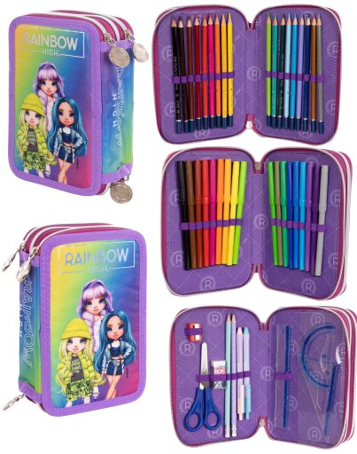 Piórnik rozkładany potrójny wyposażony Rainbow High