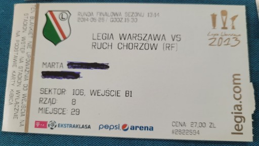 Билет Легия Варшава - Рух Хожув