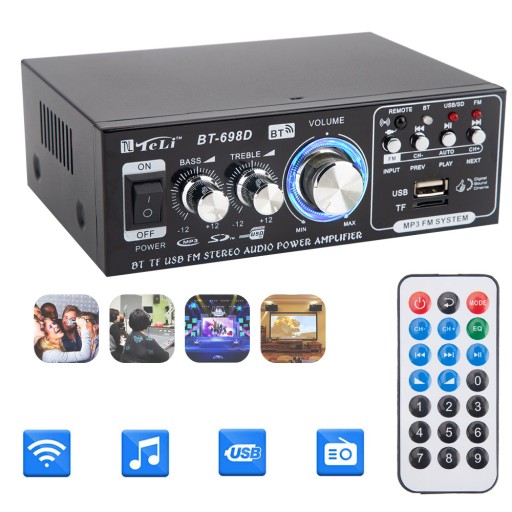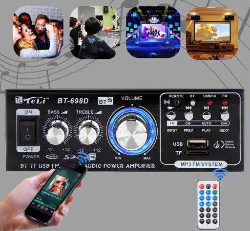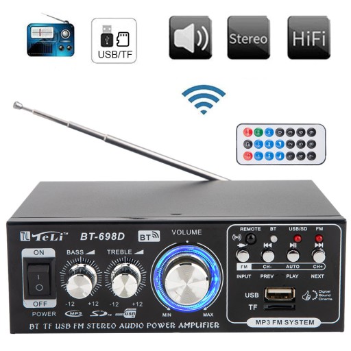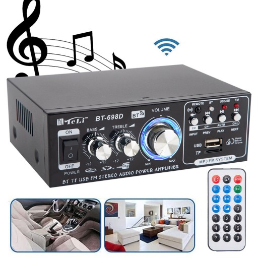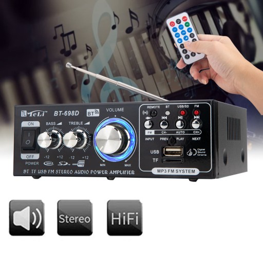 WZMACNIACZ STEREO SAMOCHODOWE BT-698D BLUETOOTH RADIO FM HIFI CYFROWY AUDIO