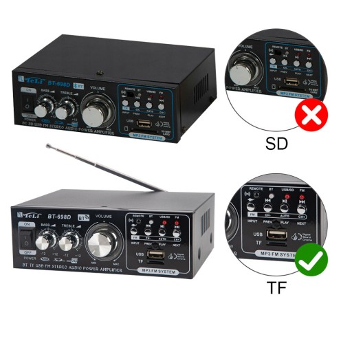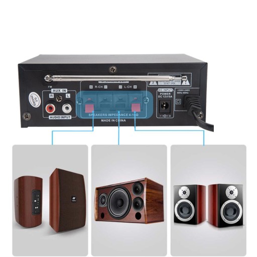 🎵Ten wzmacniacz obsługuje karty TF, dysk U, odtwarzanie w formacie MP3 i obsługuje radio stereo FM.
