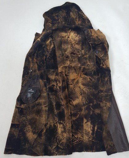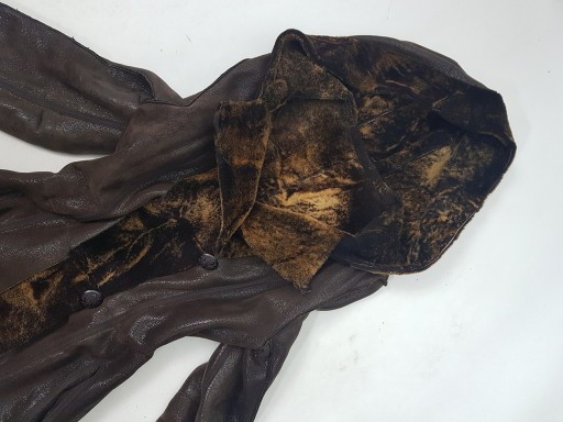 Oferuję do sprzedania mięciutki ciepły i lekki kożuch dwustronny z naturalnej skóry jagnięcej renomowanej firmy MENDER,bardzo ciepły przez wzgląd że z jednej strony ma naturalne cieplutkie miękkie krótko strzyżone futerko ,kolor gorzka czekolada z rudym,skóra subtelnie połyskująca .Zapinany na guziki,przy szyi obszerny kaptur,dwie kieszenie,fason zgrabny taliowany,można również spiąć paskiem.Stan używany bdb,praktycznie bez śladów użytkowania .Rozmiar z metki S ale proszę sprawdzić wymiary(przy kożuchach należy zawsze dodać margines ponieważ wewnątrz jest włosie dodatkowo dochodzi odzież sweter bluza itp,kożuch powinien być lekko luźny nie krępować ruchów):